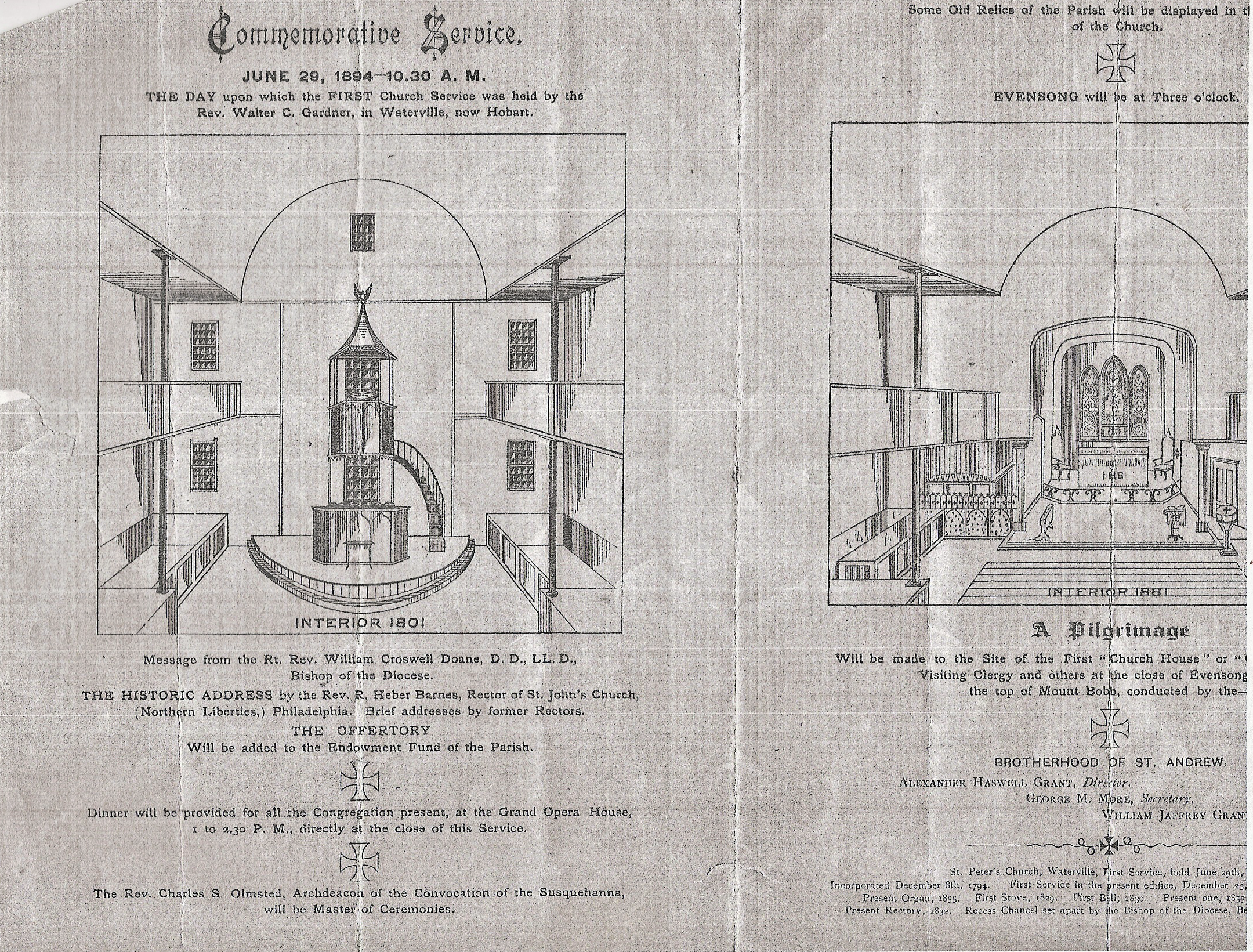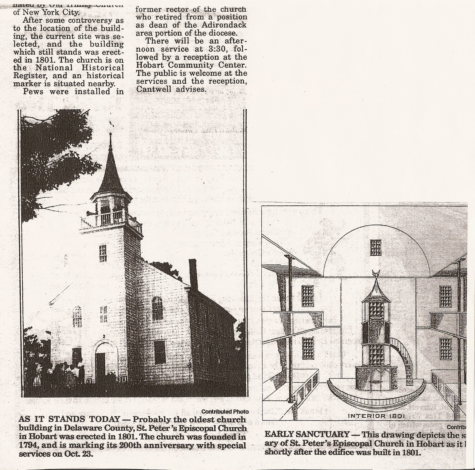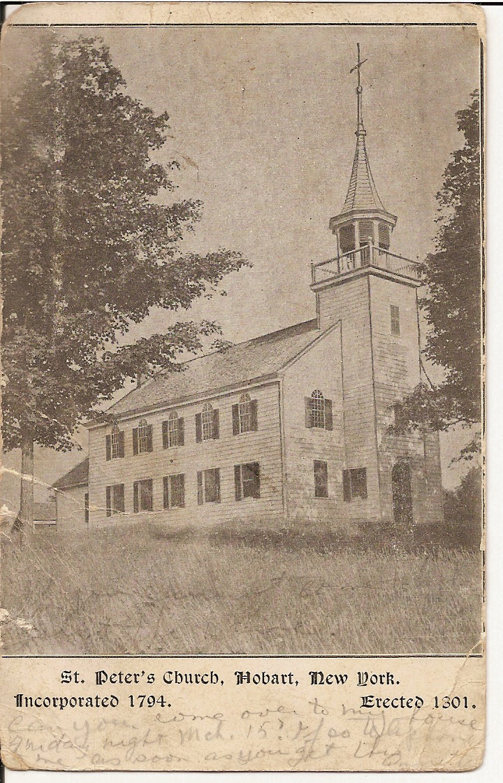 In 1794, the Rev. Walter Clark Gardner, rector of the church in Hudson, took a vacation trip through the Catskills and stopped in what was then known as Watertown, now Hobart. Here on the evening of St. Peter’s Day, June 29, “finding a number of earnest church people, I was persuaded to give a church service at the house of Stephen Barlow, after supper and before sunset. This was the first church service held in their midst,” he wrote. He added, “The people seemed much in earnest and after the service I baptized two children. Next day I spent advising many who were eager to found a congregation and build a house of God.”
